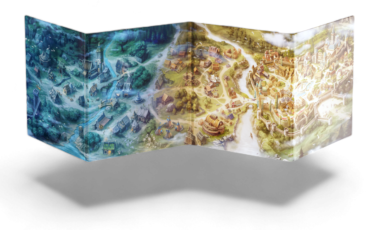DM Screen - A unique DM screen with a higher height, useful charts for world building and combat, and a 128 item loot table.